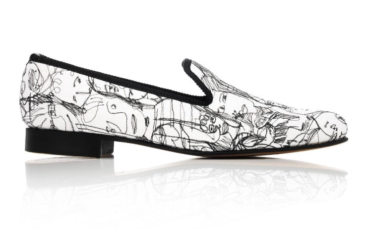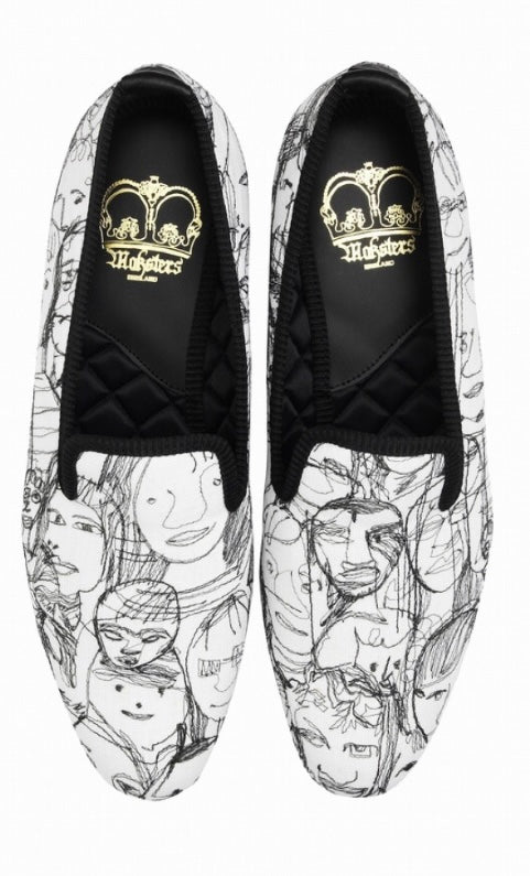 A true work of wearable art, the Faces Edition is hand-stitched in France using intricate embroidery techniques. Each pair is entirely unique, with expressive faces sketched across the fabric — no two designs are ever the same. Set on quilted lining and supple soles, these slippers balance artistry and elegance, offering individuality with every step. A collector’s piece for those who value craftsmanship as much as style.
