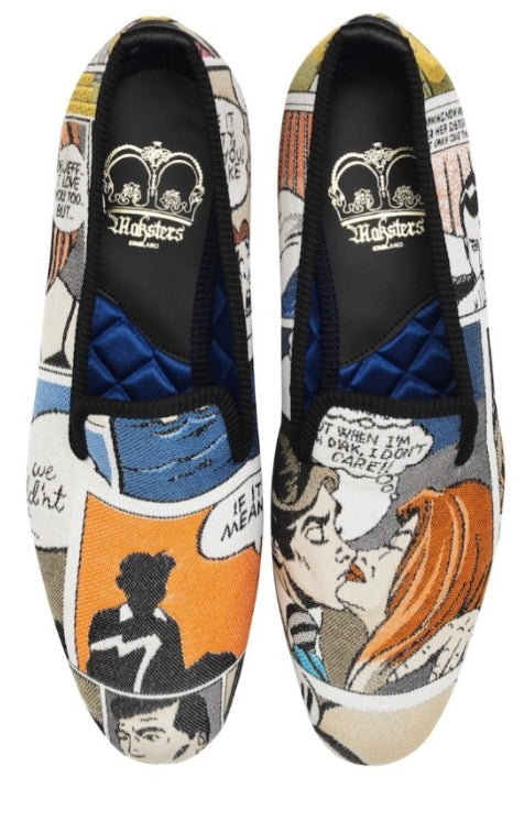 The Marvels edition transforms the classic slipper into a statement piece of art. Each pair is crafted in England using vibrant comic-inspired tapestry, with no two designs ever alike — making every pair truly unique. Finished with quilted lining and a timeless silhouette, Marvels captures playful creativity with refined craftsmanship.